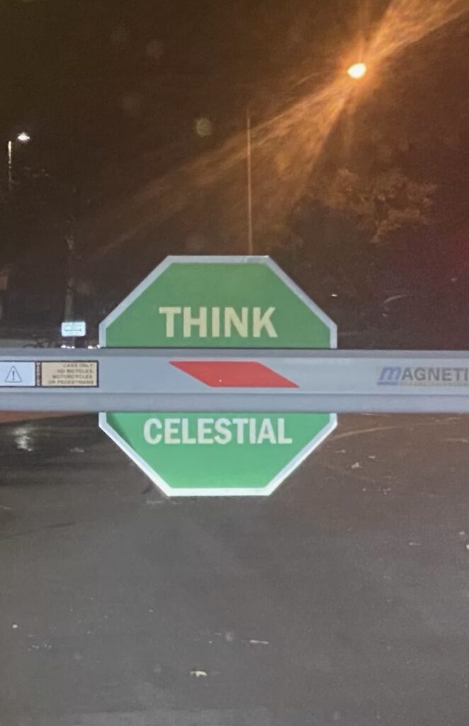 Our daughter Krystal, and granddaughter Josephine dropped us back at the MTC. On their way out they saw these messages on the back of the stop signs.