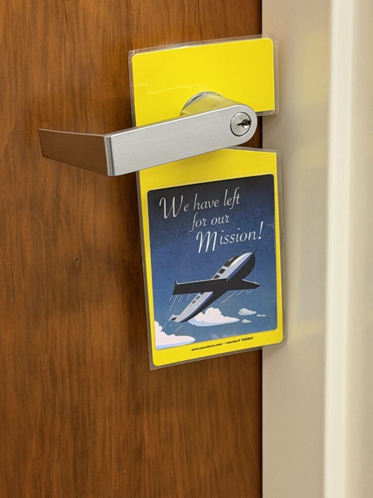 At 5:50am the last thing we did when we left our apartment at the MTC was hang this sign on the door💖