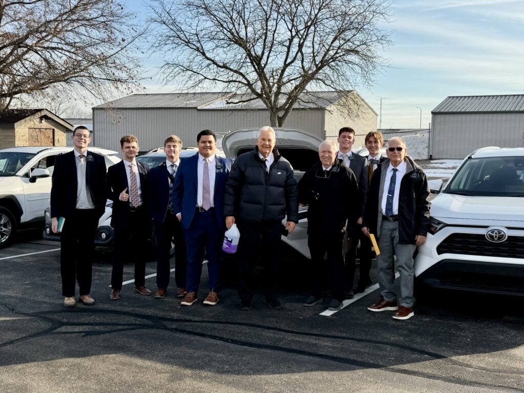 The church wants the Mission cars well cared for so oil changes are suppose to happen every 7,000 miles. We use to run Pinewood derby races for cub scouts with Elder Davis’s brother Dale and Tanya his sweetheart so Elder Davis pulled from the past and presented a twinkle car to the 5 companionships who got their oil changes done first to help promote that request.