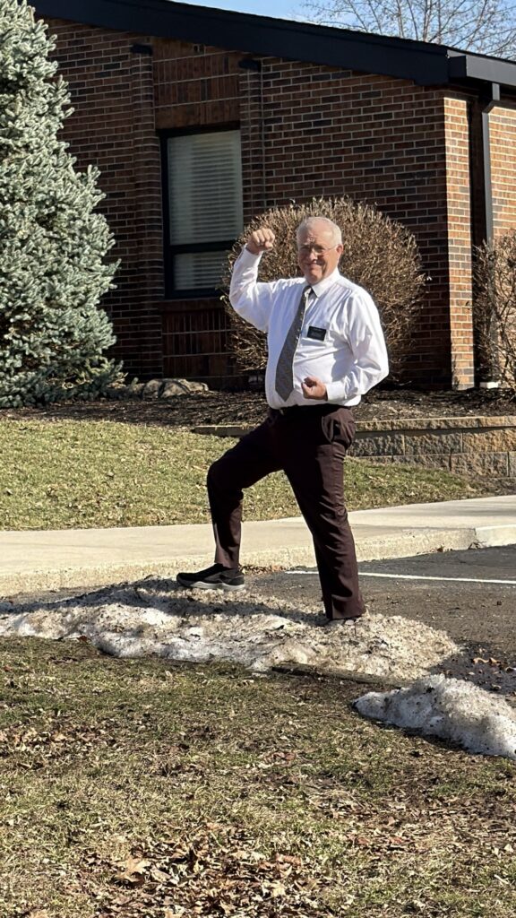 Elder Davis standing on a pile of snow as we enjoyed a beautiful sunny day of 67° weather! There were a couple geese in the church parking lot that I bet were confused trying to figure out where the snow had gone and why they were flying south for the winter!🤣
