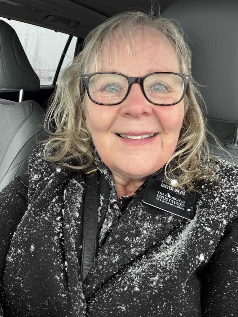 Monday I ran into Costco right when it opened to grab a few things for next weekās zone conference the weather was chilly but no precipitation. When I came out a blizzard was going on! I had parked close and only had 8 items to toss in the car. You would have laughed if you watched me! I had to close my eyes partway and look down as the blowing snow hit me in the face and pushed me back a bit. I ran to the car threw things in and left my cart in the parking slot right next to our carā¦. Yes I was one of those people!