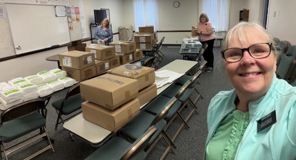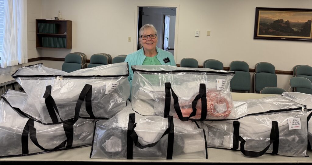 With the help of DEAR Sister Tuckett and Sister Shawcroft our Sister sisters the bedding bags are ready for incoming missionaries again. They fly in tonight.
